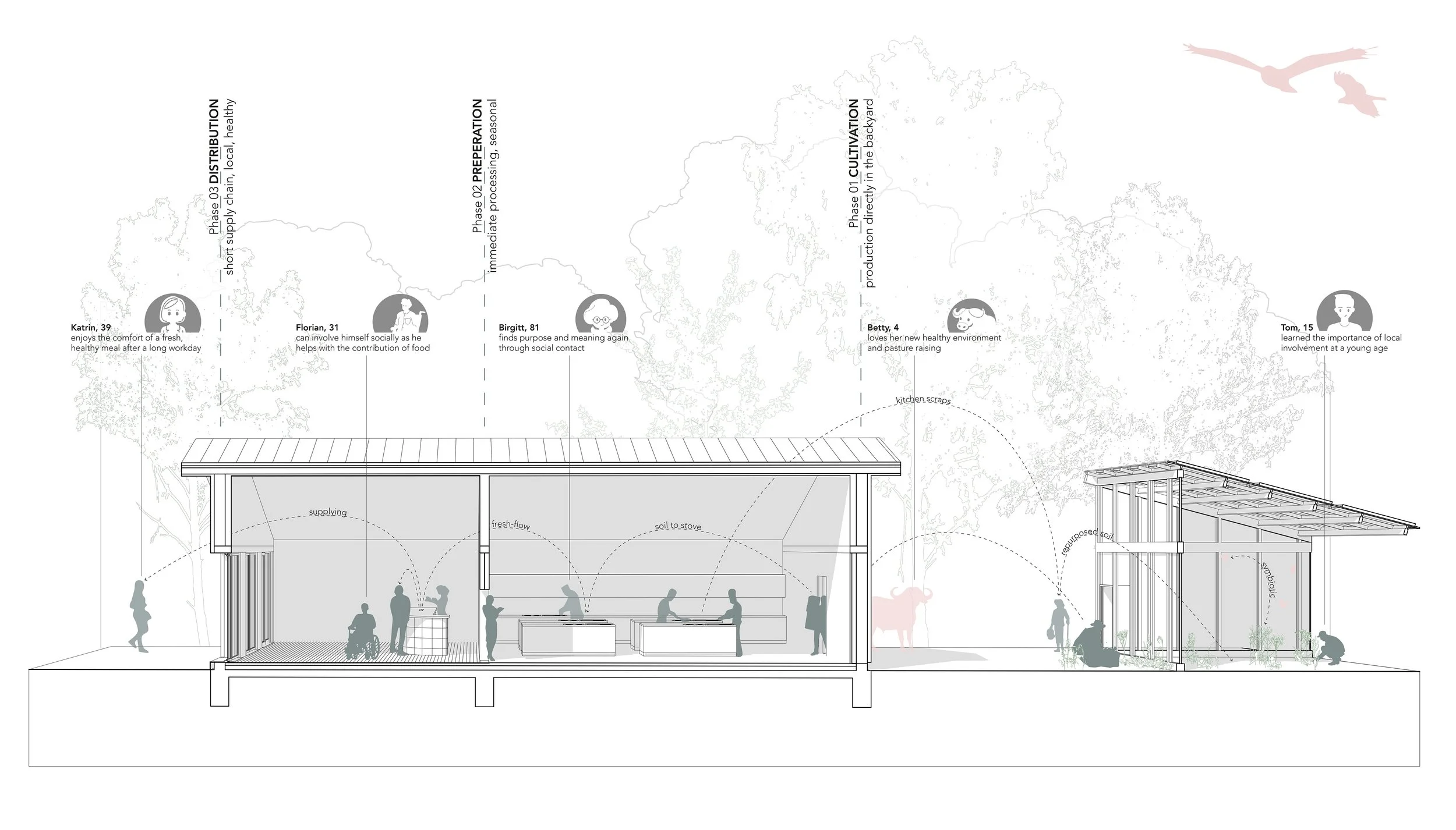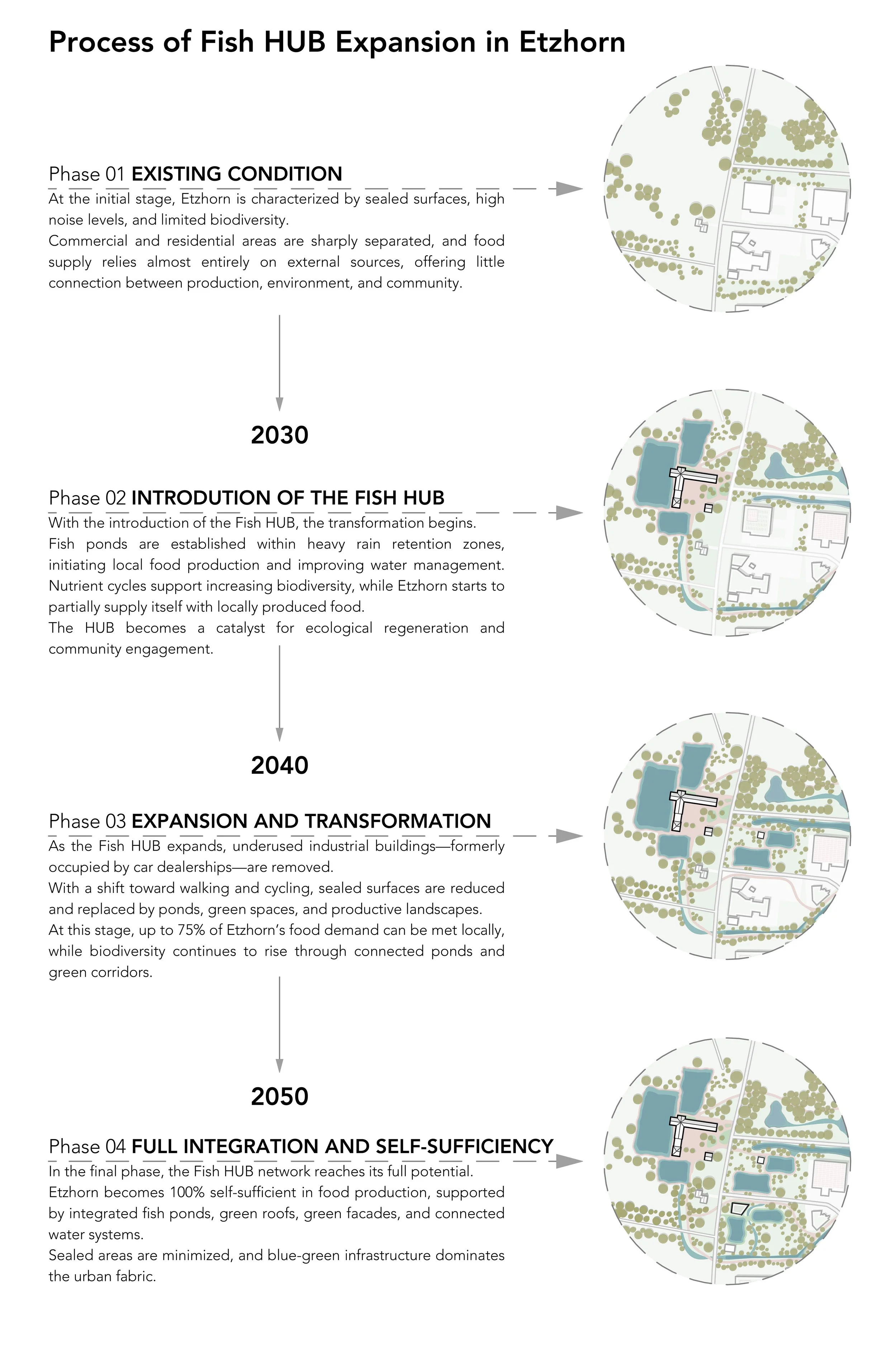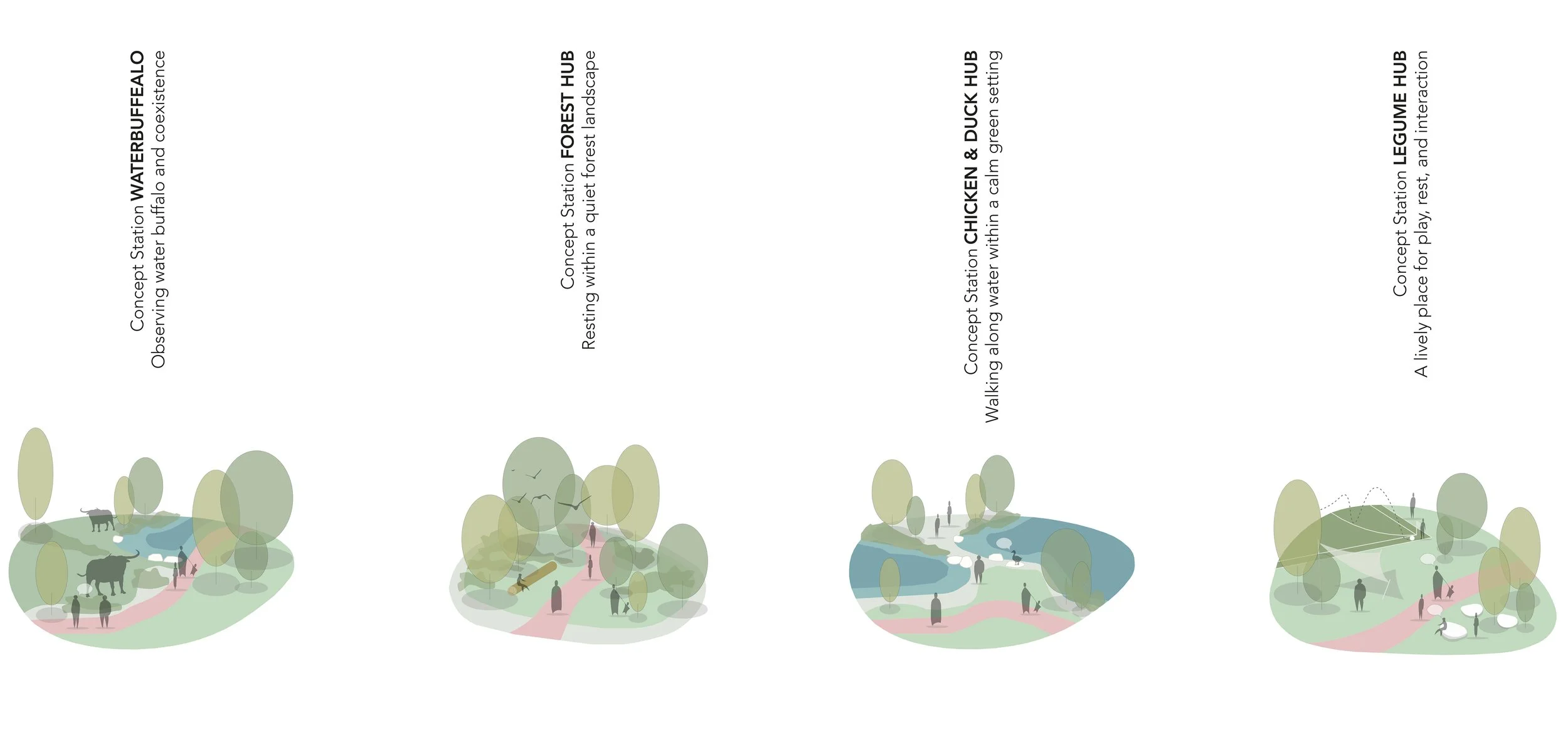 Das Konzept basiert auf einem Netzwerk aus Food Hubs – produktiven Landschaftsräumen für Fisch, Getreide, Gemüse, Leguminosen, Waldprodukte, Wasserbüffel, sowie Moor- und Feuchtgebiete. Jeder Hub übernimmt eine spezifische Funktion innerhalb eines ausgewogenen Ernährungssystems und ist räumlich wie funktional miteinander verknüpft.